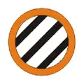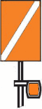 | Anfangssignal Langsamfahrstelle | Eine rechteckige orange Tafel mit einem schräg nach oben verlaufenden weißen Streifen. | Ab diesem Signal gilt die durch das Vorsignal angezeigte Geschwindigkeit. Dem Anfangssignal folgt ein Endsignal oder ein weiteres Vorsignal. Bei Dunkelheit blinkt eine am Mast angebrachte orange Lampe. | |