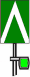 | Endsignal Langsamfahrstelle | Eine rechteckige grüne Tafel mit einem nach oben zeigenden weißen Winkel. | Mit diesem Signal endet die Geschwindigkeitsbeschränkung, sobald das letzte Fahrzeug am Signal vorbeigefahren ist. Bei Dunkelheit blinkt eine am Mast angebrachte grüne Lampe. |