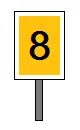 | Anfangssignal | Eine rechteckige gelbe Scheibe mit weißem Rand und einer schwarzen Ziffer. | Kennzeichnet den Anfang der vorübergehenden Langsamfahrstelle. Die Kennziffer gibt die Höchstgeschwindigkeit mit 1/10 ihres Wertes in km/h an. | |