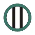| Endsignal verminderte Geschwindigkeit für Neigezüge mit Zugreihe N | Eine runde weiße Tafel mit grauem Rand und zwei senkrechten schwarzen Streifen. | Die verminderte Geschwindigkeit gilt, bis das letzte Fahrzeug an diesem Signal vorbeigefahren ist.[7] | |