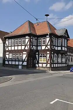 - Fachwerk-Rathaus aus dem ausgehenden 17. Jahrhundert mit Erkervorbau und Bogenfensterhalle im Erdgeschoss, kurz vor dem völligen Verfall 1921 gerettet und sehr schön restauriert.