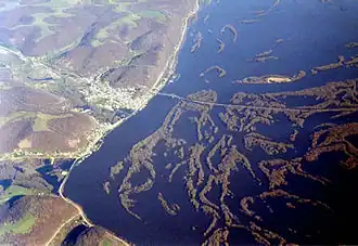 ![]() Luftbild von Lansing mit der Black Hawk Bridge | |