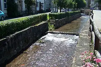 | Linke Nebenflüsse | Strenge (2,0 km, 2,7 km²), Mühlbach (3,5 km, 2,2 km²), Grübelbach (3,8 km, 3,1 km²)[2][3] | |