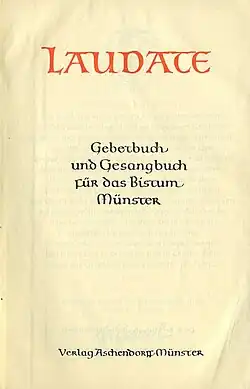 Seit den 1920er-Jahren gab das Bistum Augsburg das erste Gesangbuch Lautete heraus. Eine Ausgabe des Bistums Meißen erschien wenig später. 1927 folgte das Laudate des Bistums Basel[1] und schließlich 1950 das Diözesangesangbuch Lautete des Bistums Münster. Das Münsteraner Laudate erschien von 1950 bis 1969 in mehreren unveränderten Auflagen. Anfang der 1970er-Jahre gab es noch eine Übergangsausgabe, die stark gekürzt nur knapp den halben Umfang der früheren Ausgaben umfasste.