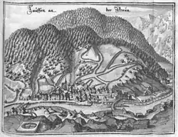 - Martin Zeiller: Lauffen. In: Matthäus Merian (Hrsg.): Topographia Provinciarum Austriacarum. Austria, Styria, Carinthia, Carniolia, Tyrolis … (= Topographia Germaniae. Band 10). 3. Auflage. Matthaeus Merians Erben, Frankfurt am Main 1679, S. 26 (Volltext [Wikisource]).