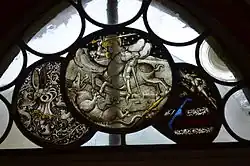 Das dreiteilige gotische Glasfenster hinter der Orgel von ca. 1470 zeigt links das Reifenberger Wappen, in der Mitte St. Georg mit dem Drachen (Die Oberreifenberger Kirche ist St. Georg geweiht) und rechts ein Falkner abgebildet. Künstler soll der Hausbuchmeister, ein mittelrheinischer Maler, Zeichner und Kupferstecher des ausgehenden 15. Jahrhunderts oder einer seiner Schule gewesen sein. Der Arnoldshainer Maler Hans Adam gestaltete 1960 weitere Glasfenster.