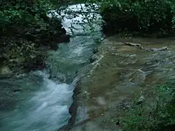 - (Zufluss aus dem Schlattstatter Goldloch), von rechts und Süden auf etwa 500 m ü. NHN in Schlattstall, 0,2 km und ca. 0,1 km².[LUBW 6] Das Schlattstaller Goldloch ist eine Karstquelle am Unterhang in etwa selber Höhe wie die Lauterquelle der Schwarzen Lauter.