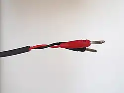 Die Adern von Lautsprecherleitungen bestehen im Regelfall aus isolierter Kupferleitung.[1] Als Leitermaterial kommen auch Aluminium (siehe auch kupferkaschiertes Aluminium) oder verschiedene Edelmetalle und Legierungen zum Einsatz. Aluminium ist weniger geeignet, da es anfälliger für Drahtbrüche ist und einen etwa 50 % höheren spezifischen elektrischen Widerstand aufweist. Edelmetalle werden in Lautsprecherleitungen ebenfalls verwendet, wobei ein Nutzen bezüglich des klanglichen Ergebnisses nicht bewiesen ist.[2]