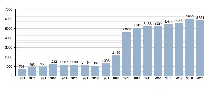 | Jahr | 1751 | 1805 | 1853 | 1881 | 1901 | 1931 | 1951 | 1971 | 1981 | 1991 | 2001 | 2011 | 2019 | 2021 | |||||||||||||||||||||||||||||||||||||||||||||||||||||||||||||||||||||||||||||||||||||||||||||||||||||||||||||||||||||||||||||||||||||||||||||||||||||||||||||||||||||||||||||||||||||||||||||||||||||||||||||||||||||||||||||||||||||||||||||||||||||||||||||||||||||||||||||||||||||||||||||||||||||||||||||||||||||||||||||||||||||||||||||||||||||||||||||||||||||||||||||||||||||||||||||||||||||||||||||||||||||||||||||||||||||||||||||||||||||||||||||||||||||||||||||||||||||||||||||||||||||||||||||||||||||||||||||||||||||||||||||||||||||||||||||||||||||||||||||||||||||||||||||||||||||||||||||||||||||||||||||||||||||||||||||||||||||||||||||||||||||||||||||||||||||||||||||||||||||||||||||||||||||||||||||||||||||||||||||||||||||||||||||||||||||||||||||||||||||||||||||||||||||||||||||||||||||||||||||||||||||||||||||||||||||||||||||||||||||||||||||||||||||||||||||||||||||||||||||||||||||||||||||||||||||||||||||||||||||||||||||||||||||||||||||||||||||||||||||||||||||||||||||||||||||||||