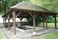 Das öffentliche Waschhaus im oberen Teil des Ortes besteht aus einer offenen Holzkonstruktion, die das Walmdach trägt.