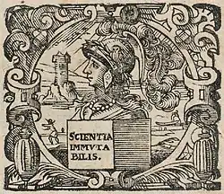 Sein Imprint-Symbol war eine Büste der Minerva mit der Inschrift Scientia immutabilis.
