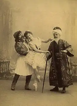 - In der Haremsszene baute Petipa einen Walzer aus Adams Originalpartitur zu einem Pas de trois für drei Haremsdamen aus. Dieser ist bekannt als Pas des odalisques („Tanz der Odalisken“) und wurde ursprünglich von Anna Prikhunova und den Zwillingsschwestern Nadezhda und Anastasia Amosova getanzt.[1] Die zusätzliche Musik der Variationen 1 und 2 schrieb der damalige Komponist des kaiserlichen russischen Ballettes Cesare Pugni.[1]
