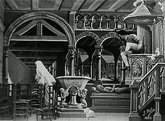 Viele Szenen wurden mit einer Falltür und dem Stoptrick inszeniert. So wirkt die Jagd des Priesters nach dem Teufel fast magisch, weil er bei Bedarf jederzeit verschwinden kann.