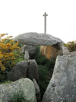 Auf dem höchsten Punkt des Felsvorsprungs, etwa 15 Meter hinter der Grabkammer, wurde im Jahre 1895 ein etwa vier Meter hohes monolithisches Steinkreuz aufgestellt, dessen Schaft und Querarme oktogonal behauen sind. Das Kreuz ist auf das Jahr 1715 datiert und stand 180 Jahre lang auf dem nahegelegenen ehemaligen Friedhof des Ortes.