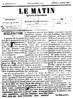 Le Matin wurde am 1. April 1907 in Port-au-Prince von Clément Magloire[2] gegründet. Sie wurde täglich in Haiti und in der Dominikanischen Republik, wo sie gedruckt wird, verkauft.