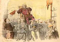 Szene 6. Shakspeare, sein Freund Latimer, Schauspieler und weitere Gäste treffen ein. Alle preisen den Ehrengast (Chor: „Chantons sa gloire“). Shakspeare eröffnet das Fest (Couplets Shakspeare: „Enfans que cette nuit est belle“).