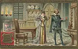 Szene 6. Als der Page das Eintreffen Shakspeares meldet, kehrt Élisabeth zurück und befiehlt Latimer, im Nebenzimmer zu warten.