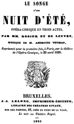 - ↑ a b c d e f g h i j Annegret Fauser: Le Songe d’une nuit d’été. In: Pipers Enzyklopädie des Musiktheaters. Band 6: Werke. Spontini – Zumsteeg. Piper, München/Zürich 1997, ISBN 3-492-02421-1, S. 282–284.