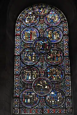 Das Bleiglasfenster mit dem Thema Leben des Thomas Becket in der Kathedrale von Sens, einer französischen Stadt im Département Yonne, wurde Anfang des 13. Jahrhunderts von einem unbekannten Meister geschaffen. Das fünf Meter hohe und zwei Meter breite Fenster ist seit 1840 als Teil des Bauwerks als Monument historique geschützt.