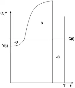 Nach Bildung des Lagrange-Ansatzes, der Anwendung der Kuhn-Tucker-Bedingungen und der partiellen Ableitung nach und erhält man nach der Berechnung des Konsums jeder Periode als Ergebnis die nachstehende Sparfunktion