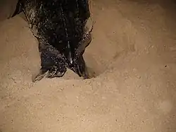 Obwohl Lederschildkröten sehr gut an das Leben im Wasser angepasst sind, brauchen sie das Land zur Eiablage. Die Nester werden an Sandküsten überall in der Welt angelegt. Es sind etwa 64 Niststrände für diese Art bekannt:[2]