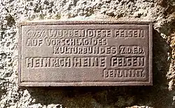 Zum 100. Todestag Heinrich Heines 1956 wurden der Felsen und der oberhalb liegende Park offiziell auf Heinrich Heine umbenannt und am Felsen wurden die Platte und das Relief angebracht.[4]