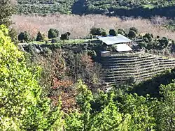 In der östlich vorgelagerten Ebene wurden die Fundamente eines ehemaligen Weingutes freigelegt. Erbaut in der Mitte des 4. Jahrhunderts v. Chr. wurde es schon kurze Zeit später (Anfang des 3. Jahrhunderts v. Chr.) durch ein Feuer zerstört. Fragmente eines fast 2000 Liter fassenden tönernen Lagerbehälters sind im archäologischen Museum in Thessaloniki ausgestellt.