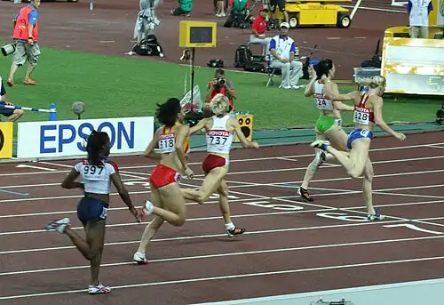 Zweite wurde die russische Titelverteidigerin, Vizeweltmeisterin von 2001, WM-Dritte von 2003 und Weltrekordinhaberin Julija Petschonkina. Sie hatte außerdem mit der 4-mal-400-Meter-Staffel ihres Landes 2001 WM-Bronze und 2003 WM-Silber gewonnen. Sie kam hier am Schlusstag mit dieser Staffel noch zu WM-Gold.