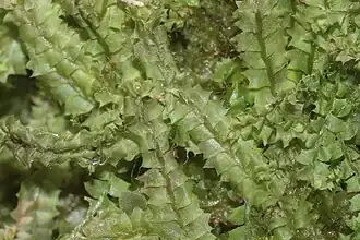 Die grünen, niederliegenden Pflanzen sind bis 2 Millimeter breit und bilden lockere, flache Rasen oder wachsen vereinzelt zwischen anderen Moosen. Die Flankenblätter sind im Umriss etwa rechteckig, flach, nicht gewölbt und sind im oberen Viertel oder auch weniger in zwei zugespitzte Lappen geteilt. Die Blattzellen sind etwa 30 bis 35 Mikrometer groß, die Zellecken sind mehr oder weniger verdickt, die Zelloberfläche (Kutikula) ist durch längliche Papillen fein papillös. Pro Zelle sind 2 bis 7 längliche, feinkörnige Ölkörper vorhanden. Unterblätter sind meist in den Rhizoiden der Stämmchenunterseite versteckt, sie sind meist einfach, lanzettlich oder zweiteilig. Die Art ist diözisch. Das Perianth ist walzen- bis birnenförmig, die Mündung kurz bewimpert. Brutkörper fehlen.