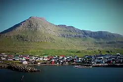 Ausgrabungen im Ortsteil Toftanes belegen, dass dieser Ort seit dem 9. Jahrhundert von Wikingern besiedelt wurde. Grundmauern einer Wikingersiedlung sind dort noch vorhanden. Bei den Ausgrabungen gefundene Holzkreuze wurden auf den Zeitraum von 860 bis 970 n. Chr. datiert und stehen damit im Widerspruch zu der in schriftlichen Quellen überlieferten Bekehrung der Färöer zum Christentum.[1][2][3]
