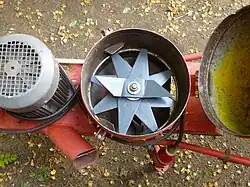 - Gartenhäcksler mit Wendelschneidwerk (auch „Schneckenhacker“ genannt) werden nur selten angeboten. Sie sind ebenso langsam, kräftig und leise wie Häcksler mit Walzenschneidwerk, verfügen über einen guten Selbsteinzug, sind aber anfällig für Beschädigungen durch Steine oder zu starke Aste. Ähnlich eines Fleischwolfs zieht die spiralförmige und konische Einzugswelle das Schnittgut hinein. Das Hackgut hat eine einheitliche Größe mit wenig Feinanteilen. Durch die enthaltenen Hohlräume läßt es sich gut trocknen, um verfeuert zu werden.[2]