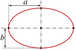 Ellipse mit den Werten: a = √2b und U = (2ϖ + 2π/ϖ)b