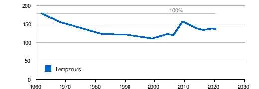 Die Bevölkerungszahlen in Lempzours waren bis 1999 rückläufig, sie stiegen aber dann bis 2009 wieder stark an. Seitdem sind sie wieder am Zurückgehen.