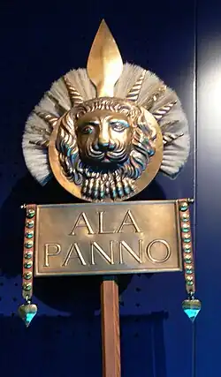| 2., bis Anfang 3. Jahrhundert n. Chr. | Ala prima Pannoniorum Tampiana milliaria victrix (die erste pannonische Reiterschwadron des Tampius, 1000 Mann stark, die Siegreiche) | Diese Einheit wurde vermutlich unter Augustus aus Angehörigen der pannonischen Stämme rekrutiert. Der Name "Tampiana" leitet sich wohl ursprünglich von einem ihrer Kommandanten ab. Die Reiter lagen im 1. Jahrhundert in Britannien und wurden 85–86 n. Chr. an den Donaulimes verlegt, wo sie an den Grenzkriegen der Kaiser Domitian und Nerva teilnahmen. Kurzzeitig hielt sich die Einheit auch in Carnuntum auf. 97 n. Chr. kehrte sie – mit pannonischem Personal neu aufgefüllt – wieder nach Britannien zurück. Seither führte sie den Beinamen Pannoniorum. Im 2. Jahrhundert n. Chr. wurde sie wieder Richtung Donaugrenze in Marsch gesetzt, bezog das Lager in Lentia und löste hier wahrscheinlich die ala I Thracum victrix als Besatzungstruppe ab. Laut Truppenliste des in Mautern entdeckten Militärdiploms kehrte sie wohl zwischen 127 und 138 n. Chr. nach Noricum zurück.[22] Vermutlich wurde sie zu dieser Zeit auch für die Feldzüge Mark Aurels im Osten herangezogen. Dort erwarb sie sich ihren Ehrennamen victrix und wurde auf 1000 Mann (milliaria) aufgestockt. Bisher sind zwei Militärdiplome bekannt, in denen die Einheit aufscheint.[23]