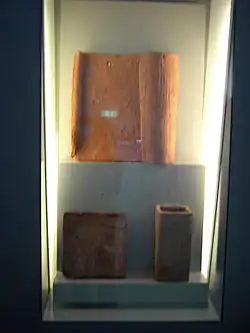 | Mitte 2. Jahrhundert n. Chr.[11] | unbekannter Numerus (Einheit/Schar) | Als Besatzung könnte auch ein numerus in Frage kommen, da in Linz mehrere Tegulaziegel mit dem Stempelabdruck NVMER(V)S in abgekürzter und ligierter Fassung geborgen werden konnten (Spittelwiese).[21] Die Ziegel wurden hauptsächlich in der Zivilsiedlung gefunden, sie dürften aus dem 2. Jahrhundert stammen. Die Exemplare mit dem Aufdruck NVMER wurden vor Ort hergestellt, die Ziegel mit dem Stempel NVM B dürften hingegen angeliefert worden sein. Möglicherweise stammen sie aus der Ziegelei des numerus Boiodurensium in Passau der damals noch mehrere andere Orte an der norischen Donau beliefert hat.[11] | ![]() |