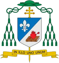 Der bischöfliche Wahlspruch ist einer Predigt des heiligen Augustinus (Enarrationes in Psalmos 127,3) entnommen: “nos multi in illo uno unum”,[72] sinngemäß: „In jenem einen (Christus) sind wir vielen eins“ oder „In dem einen Christus sind wir eins“.[73] Dieses Augustinuszitat wurde zu “in illo uno unum”, sinngemäß: „In jenem einen (Christus) eins“, verkürzt.[51]