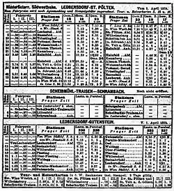 | Kursbuchstrecke: | 113 (St. Pölten – Hainfeld/Schrambach, Traisentalbahn) 513 (Leobersdorf – Weißenbach-Neuhaus, Triestingtalbahn) | ||||||||||||||||||||||||||||||||||||||||||||||||||||||||||||||||||||||||||||||||||||||||||||||||||||||||||||||||||||||||||||||||||||||||||||||||||||||||||||||||||||||||||||||||||||||||||||||||||||||||||||||||||||||||||||||||||||