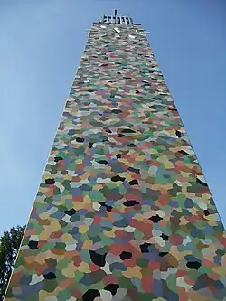 Die markante Bemalung mit über 2000 Farbfeldern wurde mit dem damaligen Dechant Johann Leopold unter dem Motto Viele Farben, ein Turm – viele Menschen, eine Pfarre! mit 20 Jugendlichen der Pfarre im Jahre 1987 ausgeführt. Das Kunstwerk wurde nach dem Entwurf „Bild der Demokratie“ von und unter der Anleitung des Grazer Malers Gustav Troger ausgeführt.