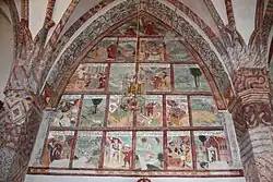 Im dreijochigen Langhaus erhebt sich ein Netzrippengewölbe über polygonale Wandpfeiler. Die mittleren Schlusssteine sind rund und bemalt. Seitlich befinden sich 16 Wappenschlusssteine, unter anderem der Adelsgeschlechter der Ortenburger, Dietrichsteiner und Khevenhüller. Die dreiachsige barocke Holzempore mit flacher Unterdecke und Balustrade entstand um 1700. Die Mauracher Orgel aus dem 19. Jahrhundert stammt ursprünglich aus Naarn. Ein spitzbogiger Triumphbogen verbindet das Langhaus und den zweijochigen Chor mit Fünfachtelschluss. Im Chor ruht ein Kreuzrippengewölbe mit quadratischen Schlusssteinen auf Konsolen, die teilweise als Kopfkonsolen ausgeführt sind. An der Chornordseite befindet sich eine profilierte, rechteckige Sakramentsnische. Das Spitzbogenportal an der Chorsüdwand bildet den Zugang zur netzgratgewölbten Sakristei im Turmerdgeschoß. Das Fresko an der Langhausnordwand stiftete 1542 Peter Wassermann an der Stuben. Dieses Dekalogfresko mit den entsprechenden erklärenden Beischriften ist ein Dokument der protestantischen Zeit der Kirche. Am Freskenzyklus mit insgesamt 21 Bildfeldern ist oben die Übergabe der Zehn Gebote an Moses zu sehen, darunter die zeitgemäße Übertretung der Gebote sowie die darauf folgenden Strafen, die mit den zehn ägyptischen Plagen illustriert werden.
