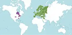 Die Art ist in Europa, in Westasien und im Kaukasusraum heimisch.[4] Sie wurde nach Nordamerika eingeschleppt. Dort kommt sie in Ontario, Connecticut, Kansas, New York, Ohio, Georgia und Pennsylvania vor.