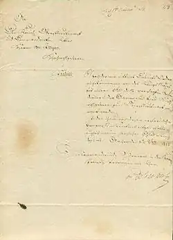 - ↑ Brief des Königs Friedrich Wilhelm III. vom 11. Dezember 1830 in Familienbesitz