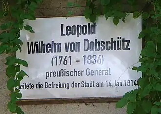 Leopold Wilhelm von Dobschütz (* 1. Januar 1763 in Brieg, Niederschlesien; † 3. Februar 1836 auf Gut Zölling, Kreis Freystadt, zuvor Kreis Sagan, Niederschlesien)[2] war preußischer General der Kavallerie. In den Befreiungskriegen von der französischen Vorherrschaft unter Napoleon Bonaparte erwarb er sich die Ehrentitel „Held von Dennewitz“ und „Befreier Wittenbergs“. Später wurde er Militärgouverneur der Rheinprovinzen und von Breslau.