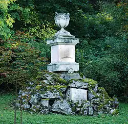 Auf Initiative der Frankfurter Freimaurerloge „Zum aufrichtigen Herzen“ und nach einem Entwurf von Bernhard Rhode entstand 1787 ein sieben Meter hohes Denkmal aus Sandstein. Es wurde am 11. August 1787 am Prinzenufer in der Dammvorstadt aufgestellt, wo der Leichnam des Herzogs aus dem Wasser gezogen worden sein soll.