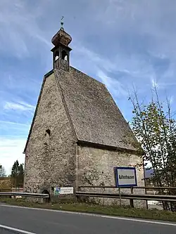 Die kleine spätgotische Kapelle steht in einer Hanglage, das Bodenniveau der Kapelle ist erheblich tiefer als die Bundesstraße davor.