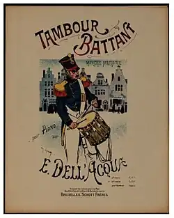 Die belgische Komponistin und Sängerin Eva Dell'Acqua (1856–1930) stellte ihre bis dahin entstandenen Werke 1913 in Gent vor. Es war das einzige Mal, dass Musikwerke aufgeführt wurden. „Tambour Battant“ war ein gutes Beispiel, um ihr gesamtes musikalisches Werk zu beschreiben.