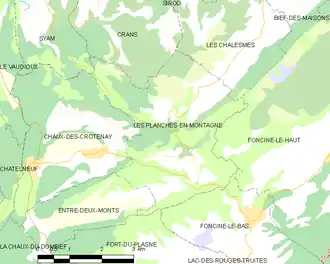 Zu Les Planches-en-Montagne gehören neben dem eigentlichen Ort auch mehrere Weiler, Hofgruppen und Einzelhöfe, darunter: