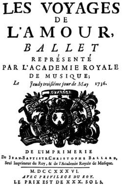 Les voyages de l’Amour ist die erste der drei Ballettopern des französischen Barockkomponisten Joseph Bodin de Boismortier, die an der Académie Royale de Musique in Paris uraufgeführt wurden. Es folgten Don Quichotte (1743) und Daphnis et Chlóe (1747).[3]:78 Das Libretto stammt von Charles-Antoine Leclerc de La Bruère. Voltaire pries es in einem Brief an Berger vom 5. April 1736 als „voller Grazien und Geist“ („plein de grâces & d’esprit“).[4] François-Joseph Fétis schrieb die Ballettoper irrtümlich dem Komponisten Jean-Baptiste Niel zu.[5][6]