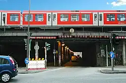 Auf der westlichen Seite werden die vier Gleise der S-Bahn Hamburg vor deren Einfahrt zum Tiefbahnhof Altona unterfahren, mittig und auf der östlichen Seite die acht Gleise und vier Bahnsteige des Fernbahnhofs Altona in der Hochlage.
