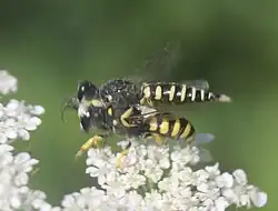 Lestica clypeata ist ein Hautflügler aus der Familie der Crabronidae.