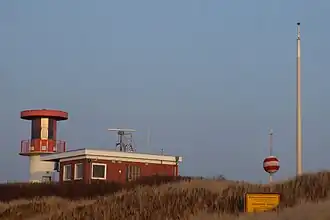 Der 1986 errichtete weiße Betonturm mit rotem Laternenhaus, Galerie und rundem Flachdach zeigt lichtstarke Blitze, wenn vom Truppenübungsplatz Putlos und Truppenübungsplatz Todendorf auf Luft- und Seeziele geschossen wird. Die roten (Putlos) und gelben (Todendorf) Lichtsignale werden von 400 Watt starken Halogenmetalldampflampen erzeugt. Neben dem Turm steht ein bungalowähnliches Gebäude, das zur optischen und Radarüberwachung des Warngebietes genutzt wird.